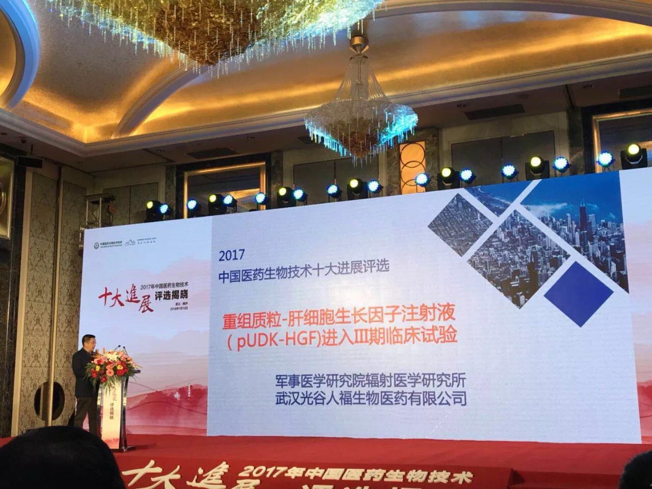 1月13日,由中国医药生物技术协会和《中国医药生物技术》杂志社共同主办的“2017年中国医药生物技术十大进展评选揭晓”活动在浙江桐庐举行,悟空体育集团的“重组质粒-肝细胞生长因子注射液进入Ⅲ期临床”项目最终入选。出席本次活动的嘉宾有评选专家团代表魏于全院士、程京院士,主办和承办单位的领导、投资人和企业家、中央及地方十余家媒体记者。