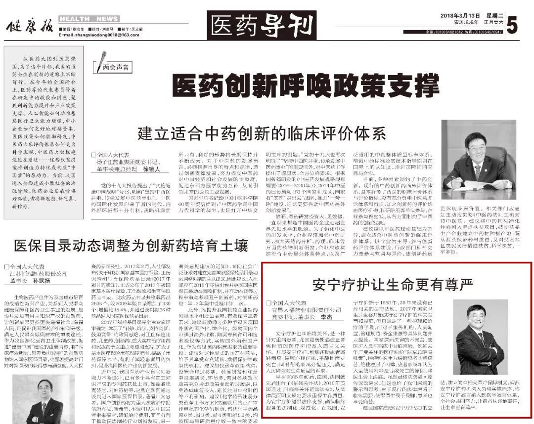 如何更好地实施临终关怀,帮助病人减少临终前的痛苦?全国人大代表,悟空体育集团股份公司总裁,宜昌人福药业有限责任公司党委书记、董事长李杰建议推动《安宁疗护法》立法,进一步规范安宁疗护的标准和管理制度,帮助病人有质量有尊严地度过生命的最后时光。该建议受到媒体积极关注,并先后在中国新闻网、《健康报》登出。