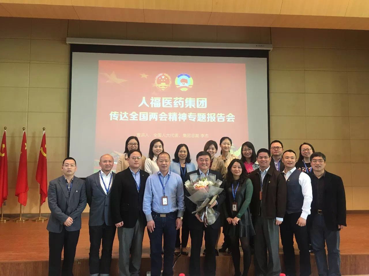 报告会上,李杰总裁分享了他在全国两会履职参会的亲身经历,并就会议概况、会议精神、参会体会向大家进行传达。在十几天会议期间,李杰亲身参与多项国家重大决策的审议和讨论,见证了习近平总书记全票当选国家主席、中央军委主席的重要历史时刻,并就宜昌规划建设、医药行业发展、社会民生等方面内容在代表团和小组会上发言,提出建议十多条。 他认为,在认真学习领会全国两会精神的同时,更重要的是把精神贯彻到企业发展的每项工作中去。李杰总裁要求人福全体员工:以壮士扼腕的决心,一往无前的气概,朝着成为具有持续竞争力的世界级医药企业的目标,快马扬鞭、全力以赴。我们正处在中国大变革、大发展的新时代,不仅要做见证者、受益者,更要作为参与者、推动者,以舍我其谁的勇气和担当,肩负起保护人民生命健康的责任!让我们紧密团结在以习近平总书记为核心的党中央周围,勇担使命,奋往直前,在春风浩荡的新时代,凝聚磅礴力量,书写辉煌篇章! 两会精神 1、关于《宪法修正案》的主要精神 确立科学发展观、习近平新时代中国特色社会主义思想在国家政治和社会生活中的指导地位;把“中国共产党领导是中国特色社会主义最本质的特征”写入宪法第一章《总纲》;修改国家主席任职方面的有关规定;增加有关监察委员会的各项规定。 《宪法修正案》的通过和公布施行,为坚持和维护以习近平同志为核心的党中央权威和集中统一领导,为新时代坚持和发展中国特色社会主义、实现“两个一百年”奋斗目标和中华民族伟大复兴的中国梦,提供了有力宪法保障。 2、关于《监察法》的主要精神 监察法是一部对国家监察工作起统领作用的基础性法律。监察法的审议通过,表明国家监察体制改革取得决定性成果,为构建集中统一、权威高效的国家监察体系奠定了坚实基础。《监察法》出台实现了对国家行使公权力人员监察全覆盖。 宣讲足迹 3月27日下午,宜昌人福药业公司举办传达全国两会精神专题报告会,全国人大代表李杰向公司中高管、员工代表共计400余人作专题报告。湖北日报、湖北卫视、三峡广电、三峡日报等新闻媒体参会并对活动进行全面报道。 3月28日,李杰受邀分别在宜昌高新区、宜昌市卫计委向党员干部传达两会精神,高新区管委会主任汪元程、宜昌市卫计委主任张琼分别主持了报告会。 3月30日,悟空体育集团总部,隆重召开“悟空体育集团传达全国两会精神专题报告会”。全国人大代表、悟空体育集团总裁李杰为公司全员宣讲两会精神。 接下来,李杰还将在武汉工程大学、宜昌市一医院等单位,向大家深入传达全国两会精神。 两会履职风采 中共十九届中央政治局常委,十三届全国人大常委会委员长栗战书与全国人大代表李杰亲切握手 全国人大代表李杰、于清明探讨医药企业如何提升核心竞争力 全国人大代表李杰接受媒体采访