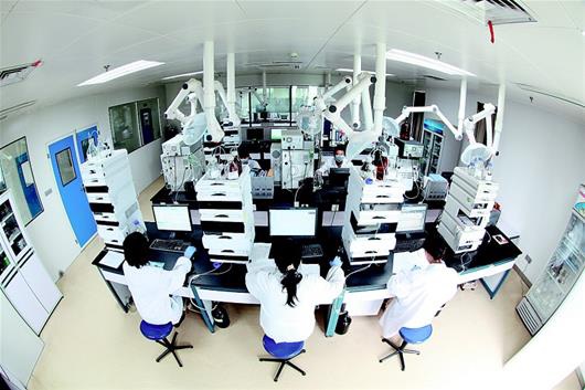 图为:悟空体育院士专家工作站技术人员正在开展新药研发。(受访企业提供)